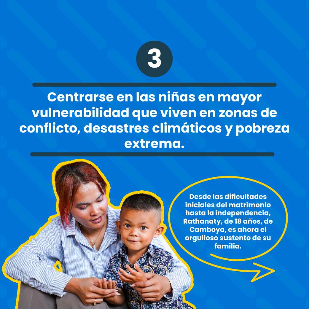 Apoyándolas, juntos podemos acabar con las creencias y normas sociales profundamente arraigadas que conducen al matrimonio y las uniones infantiles forzadas, para que todas las niñas puedan elegir su propio futuro.